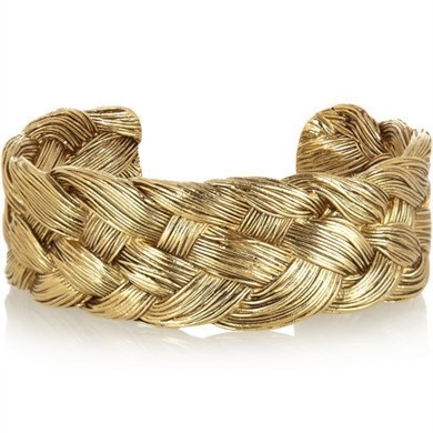 这款镀金手镯做工精湛,营造出麻花编织效果。无论是单独佩戴还是和类似款式层叠佩戴,这只手工制作的手镯都同样引人注目。