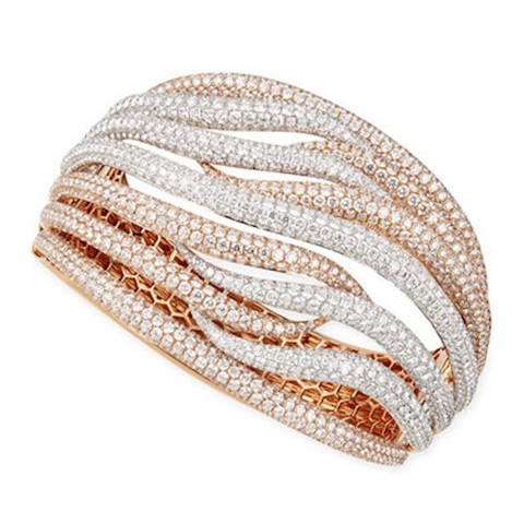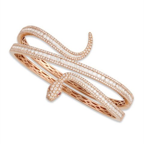 蛇形手镯成为经典设计,优美的曲线也衬托出手腕的线条使之更加优雅。