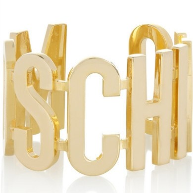 Moschino 这款颇具分量的镀金品牌标志手镯融入了1990 年代的风格。为庆祝“1945-2014 意大利魅力时装展”,Moschino 与伦敦维多利亚与艾尔伯特博物馆(V&A) 合作打造了一系列作品,这件惹眼配饰即是其中之一;不妨搭配小黑裙和平底鞋。