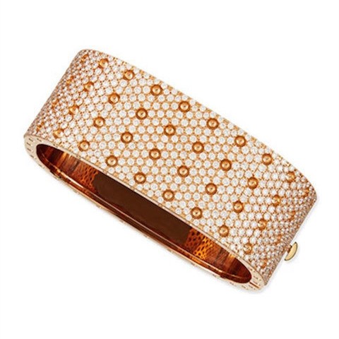 金色手镯点缀不同颜色的钻石,带来质感与奢华。