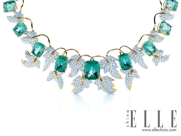蒂芙尼让史隆伯杰18k金镶钻及绿碧玺树叶项链