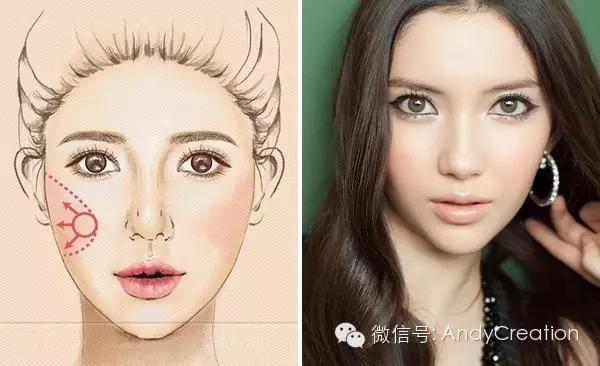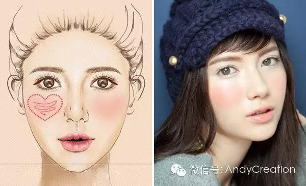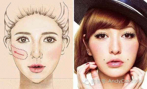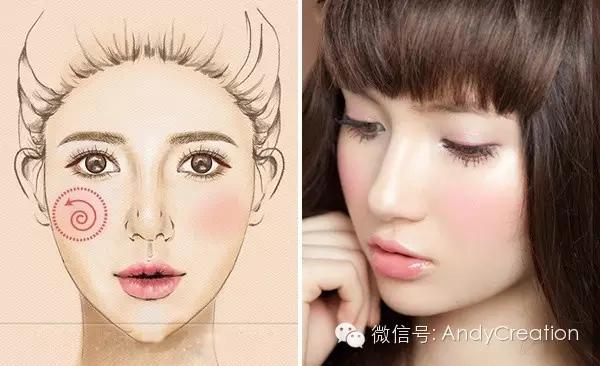 涂法:从苹果肌开始往两旁刷,有点像扇形的形状