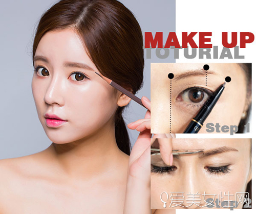 Step 1 首先用眉笔画出想要的眉形的上下边界;