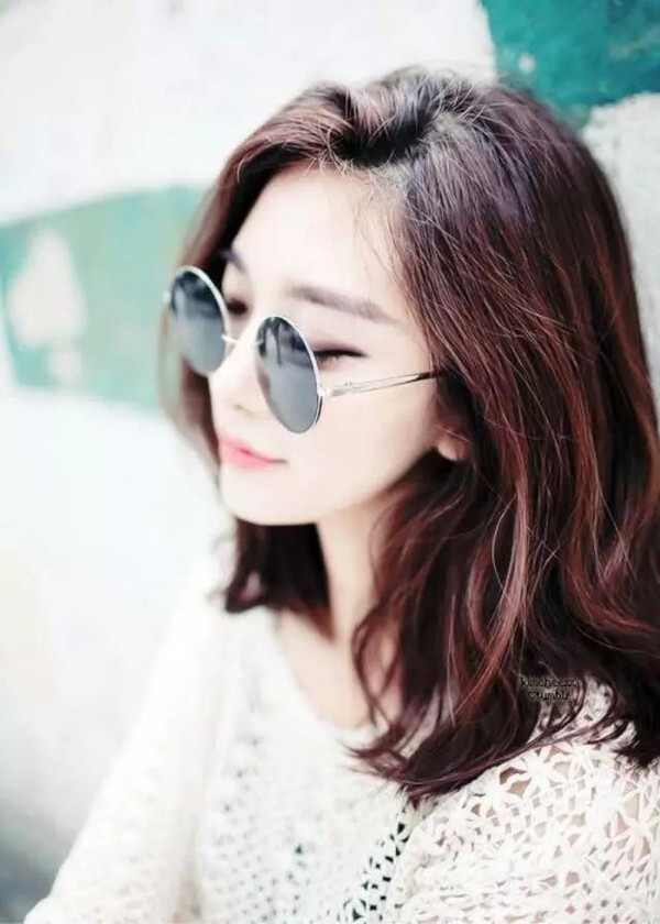 微卷的齐肩短发,配上暖色调的橘色,显得肌肤白皙可人,还很显脸小哦。