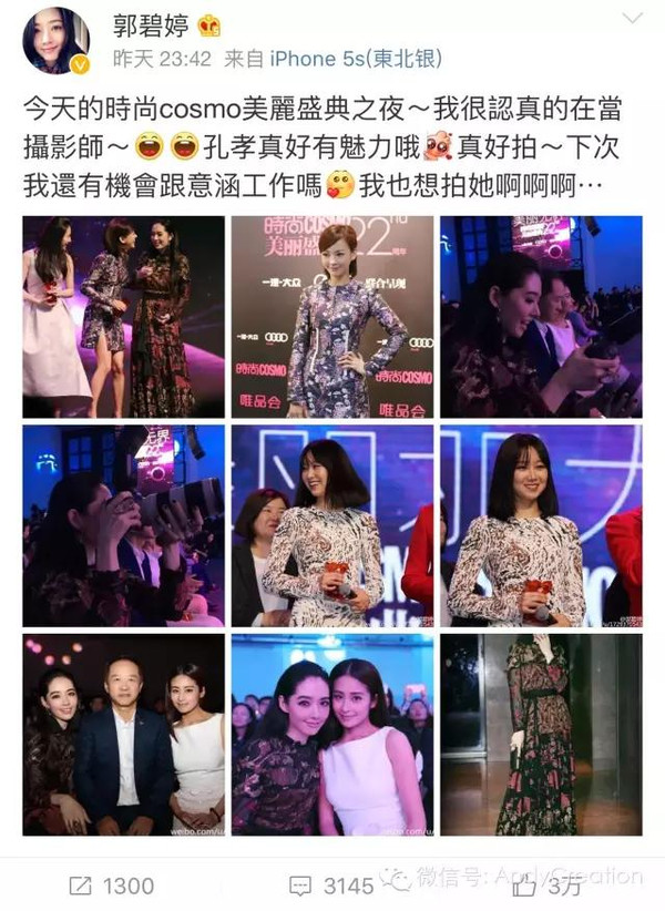 美的使者看完了明星们热闹的微博,来看看美的使者们~一直致力于创造美、传递美的Andy老师受邀出席时尚COSMO美丽盛典。