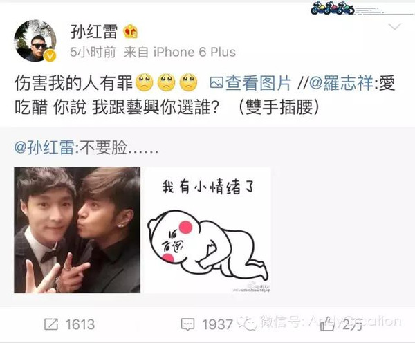 没到现场的“颜王”孙红雷可不甘心错过,罗志祥和张艺兴共同出席COSMO,可把孙红雷“气坏啦”(捂嘴笑)
