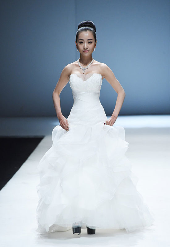 刘璇为婚纱品牌走秀,体操运动员出身的她一招一式有些美,但是也弥补不了身高的缺陷。