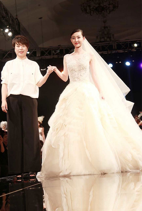 钟丽缇身穿刺绣婚纱礼服,辣妈果然“威武”。