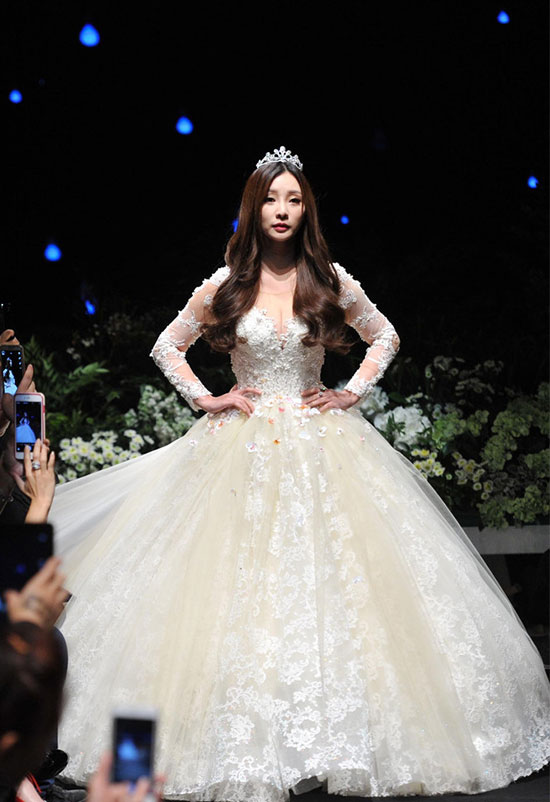 2015年10月30日, “国民女神”柳岩身穿重达50斤的巨型婚纱压轴走秀。透视婚纱让双臂若隐若现,低胸设计凸出丰满双乳。款款走上T台,闪光灯不断,她浅笑连连,步履缓缓,成功抢镜。