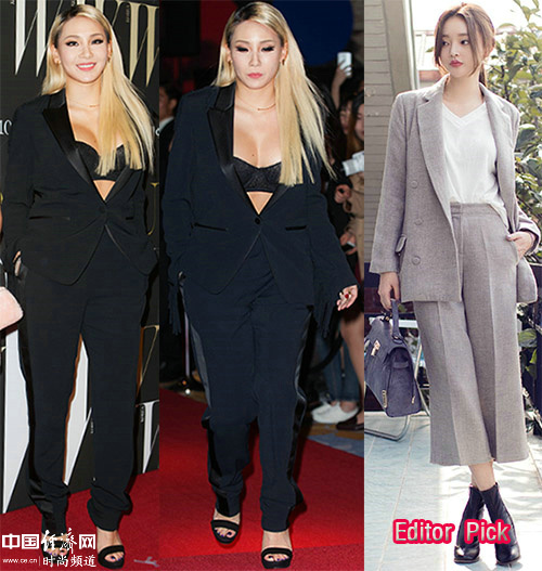当天,以突显内衣的时尚展现在观众面前的CL,身穿黑色夹克和长裤,尽显领袖风范。而她当天若隐若现的内衣时装,也成为当场拍摄的焦点。