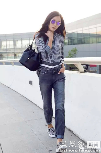 高圆圆一身深蓝色造型又拎了只深蓝色的Riley,大气又很知性,特别适合日常出行。