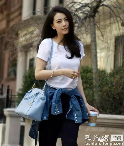 天王嫂今年去时装周的时候就背过,也是白色的,温柔的款式和白色很契合。