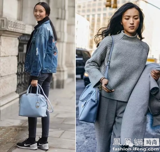 天蓝色非常受欢迎,可儿也有一只,搭配浅色系出街,美美哒~