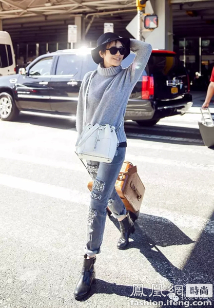 中国超模王路平这只背过好多次,搭配灰色系非常时髦,Riley并不是只适合夏天,冬天你可以用它来搭配灰色大衣。
