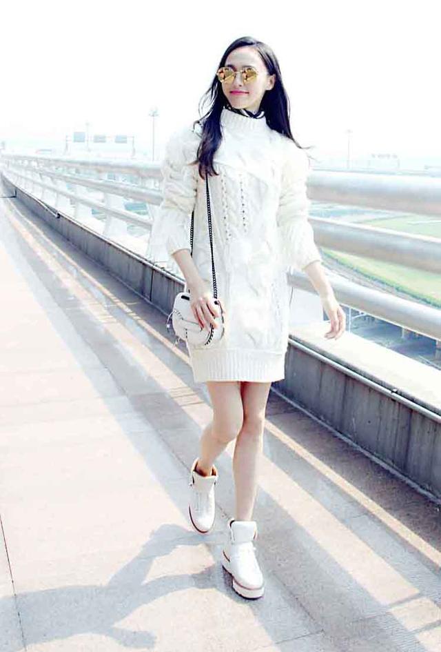 2016春夏纽约时装周COACH家的座上客唐嫣真的很给面子,大热天的厚厚长款毛衣配合露大腿,真的为了这个时装周拼尽全力了。虽然在时装周期间这件厚衣服显得有些不合时宜,然而下雪天一件长款纯白针织毛衣想必是再合适不过的踏雪利器啦!
