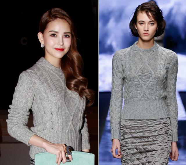 昆凌身穿Max Mara2015秋冬浅灰色羊毛骆驼针织衫