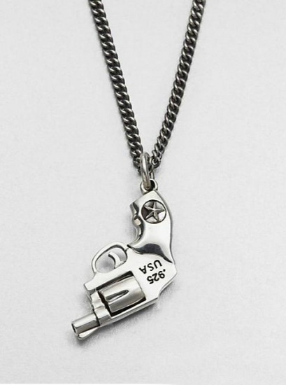 King Baby Studio左轮手枪坠饰项链 约人民币¥3,113。男人对枪的兴趣就像女人喜欢珠宝一样与生俱来,如此小巧又逼真的配饰既酷又可爱。