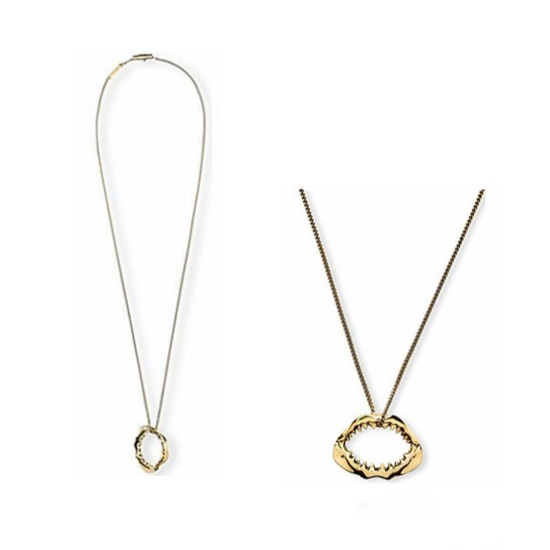 Arizaga鲨鱼嘴形状项链 约人民币¥1,375。金色一定要选择带有这样有趣味坠饰的单品,否则容易显得庸俗。