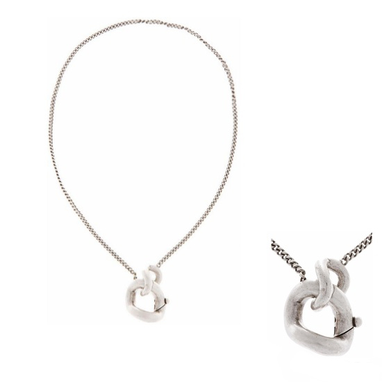 Maison Martin Margiela锁链式项链 约人民币¥2,988。做成银色调的黄铜项链,呈现出时尚复古感。