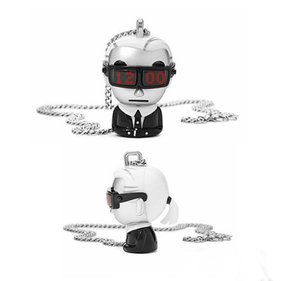 Karl Lagerfeld Watches时间项链 约人民币¥1,949。这款潮品是由Karl Lagerfeld和日本品牌Tokidoki合作。平时总是戴着大墨镜的Karl Lagerfeld也有这么萌的时候,你可以透过他的大墨镜去知晓时间。