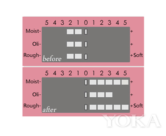 使用后的肌肤细腻程度大幅增加,水分值也达到了满分。只有水分充盈,细胞饱满才不容易出现皱纹。