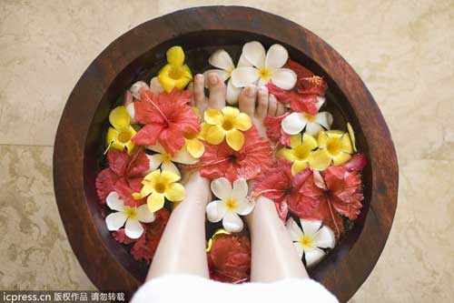 特别的是,可以在泡脚的水中加入中草药,因为脚上筋脉穴道较多,可以很好的吸收水中的药物成分。如果你想通过泡脚达到减缓腰腿冷痛,可以放入当归、川芎;若是要减缓头晕目眩,则可放入菊花、夏枯草;如果是要祛燥去脚气,那就放入艾草等。