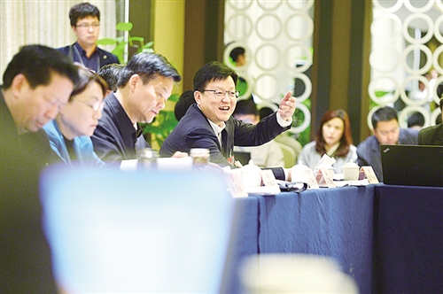 3月6日,全国人大代表高宏彬(中)说,应围绕以“互联网+”思维推动创业,激发全社会的创业热情。本报记者 李景录摄