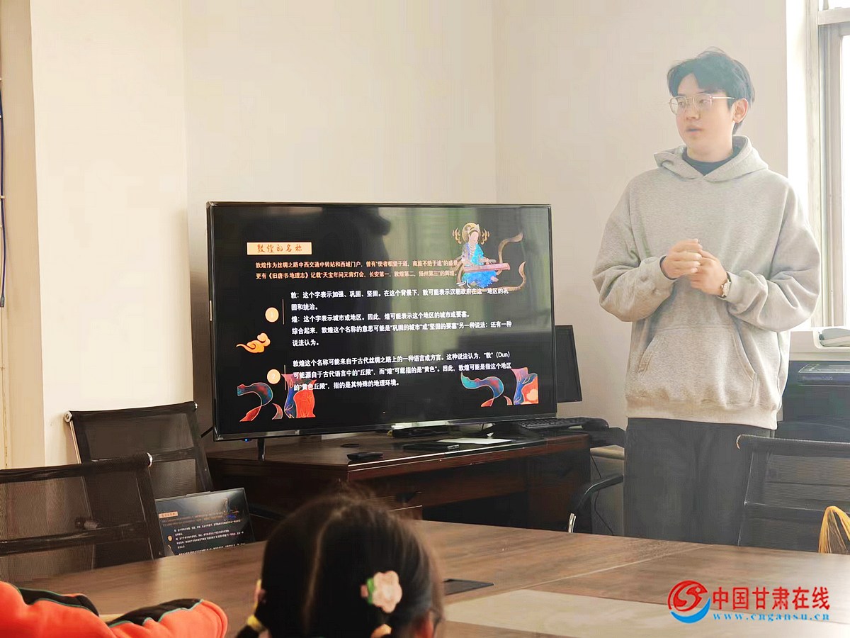 (图/志愿者介绍敦煌的名称由来)