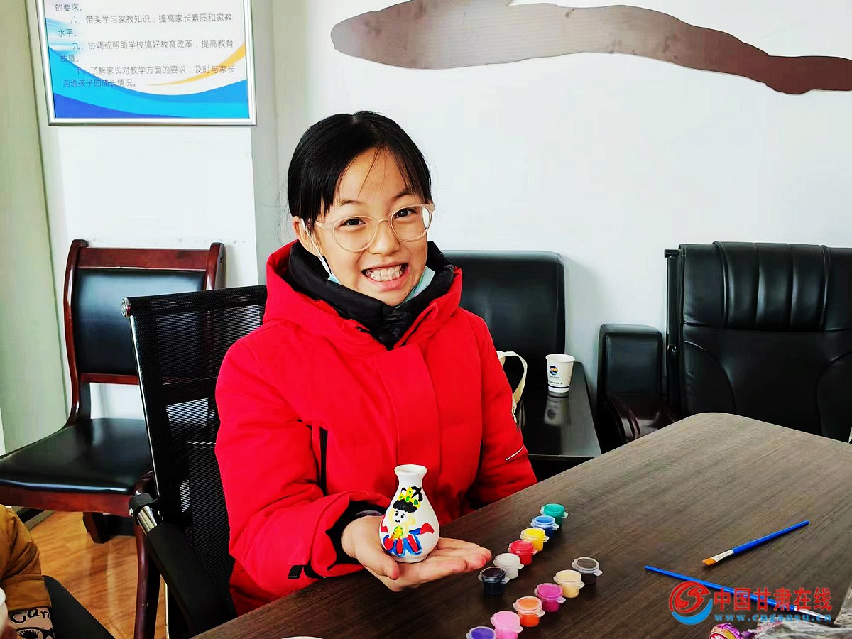 (图/小朋友展示自己的“飞天”陶瓷)