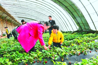 近日来,榆中县三角城乡詹家营村农业示范园大棚里的草莓成熟,众多市民带着家人来到这里采摘草莓。据园区负责人介绍,这些草莓从春节前就已上市,将持续到5月底,周末高峰期每天有2000多人光顾。