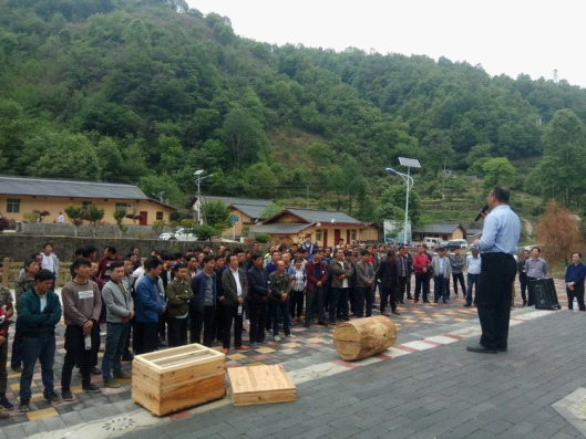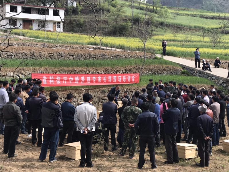 中国甘肃在线讯 4月21日,由省科技厅牵头邀请甘肃省养蜂业技术推广总站副研究员逯彦果,在长坝镇、三河坝乡举办中蜂养殖技术现场培训会。省科技厅农村处负责人、康县委副书记马锟及长坝镇、三河坝乡帮扶村和周边村村民共130多人参加了培训。逯彦果副研究员结合自身16年的养蜂技术研究经验,向贫困群众详细介绍了蜂箱选择、取蜜、春季出蜂注意事项、如何提高蜂蜜产量等养蜂关键技术环节,还就蜜蜂特性、春季繁殖、冬季喂食、蜂箱清扫、如何培育蜂王、扩群、蜂蜜品质提升、虫害防治及市场营销等方面作了详细讲解。最后,逯彦果研究员与蜂农们进行场下交流,答疑解惑,解决养蜂实际技术问题,并积极引导广大贫困群众,把中蜂养殖作为一项增收致富的产业来抓,要有通过中蜂养殖脱贫奔小康的坚定信心。