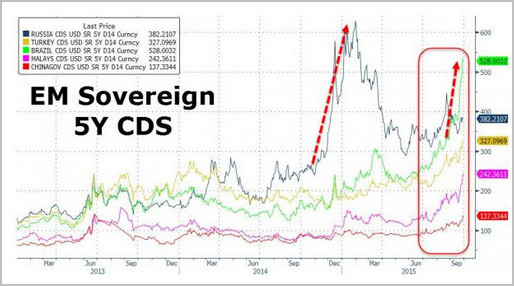 为什么俄罗斯、土耳其、巴西和马来西亚的主权债务现在会飙升?因为热钱正在流出这些国家。这些国家未来出现债券违约的风险升高了。