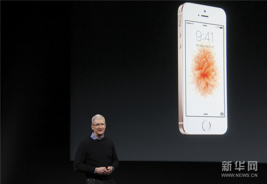 3月21日,在美国加利福尼亚州丘珀蒂诺,苹果公司首席执行官蒂姆·库克在发布会上介绍新产品。当天,美国苹果公司举行发布会,推介新款智能手机和平板电脑等产品。 新华社发 3月21日,在美国加利福尼亚州丘珀
