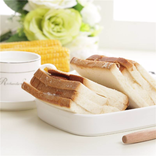 当面筋含量高时,就叫高筋粉。这样的面粉在揉捏过程中,会形成很多麦蛋白的网络结构,使得面团非常具有韧性。做面包时技术含量很高的“手套膜”就是这么来的,手套膜的存在让面包具有层层叠叠的口感,将这个特性发挥得最好的点心,比如金砖。这也是为什么高筋粉又叫bread flour。需要耐拉、有韧性的拉面和苏打饼也适合用高筋粉。