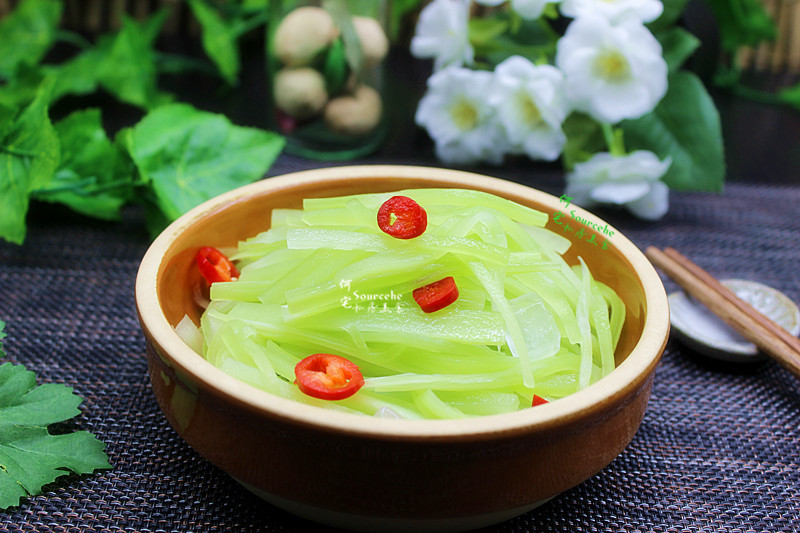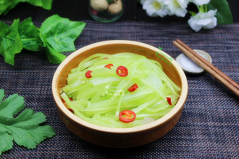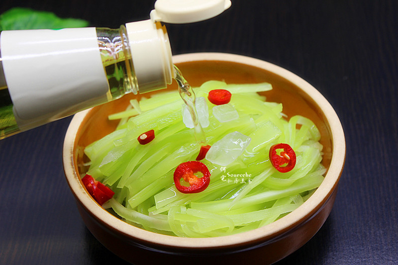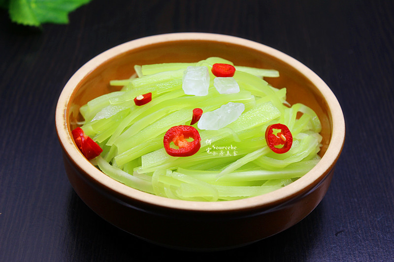 凉拌莴笋,是一道非常简单的家常菜,食材简单,主要就是莴笋,用盐腌几分钟,再加点辣椒、凉拌醋、冰糖,拌一拌就能吃。口感爽脆,酸甜可口,助消化,经常吃还能减肥。具体做法如下: