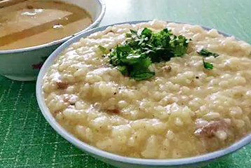潘硕珍  黎明光临以后,岷县县城街巷逛早市的人,大都要掏腰包吃早点,有黄酒泡馍、清汤羊肉泡馍、粉鱼泡麻花、豆浆泡油条、吃包子喝稀饭(含八宝粥),也有啃牛羊肉骨头或喝牛羊肉臛臛儿的。依照《实用汉字字典》解释:“臛臛儿”就是肉羹。也有稠粥之
