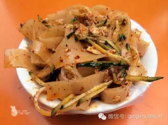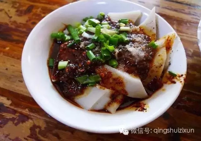 天水凉粉品种繁多,风味各异,制作考究,佐料独特。用荞麦制成的凉粉柔软滑爽,用豌豆制作的凉粉晶莹透亮,还有用扁豆、粉面等制作的凉粉。其中用荞麦制作的凉粉工艺复杂,风味俱佳。荞麦凉粉是先把荞麦碾成荞珍子,去衣后,把荞珍子用手工碾成粉末,放在清水中浸泡,然后用马尾编织的细箩过滤,滤出的精华部分入锅用温火熬煮,熬成稀粥状后舀入盆中。冷却变得软硬适宜时,即可食用。食用时,可削成长条形薄片,也可用专用的“捞捞"捞成长粉条状,盛入碗中,调入油泼辣子、芝麻酱、醋、酱油、芥末、蒜泥、精盐、花椒面等佐料,吃起来往往使人食欲大增,胃口大开。