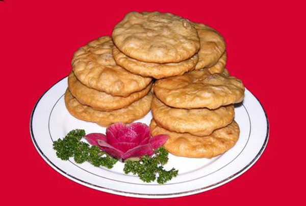 西峰炉齿馍是以优质面粉、食油为原料,经特别工艺加工而成,其形似炉齿,色泽黄亮,酥脆可口,老少皆宜,风味独特,深受欢迎。西峰炉齿馍做法特别,选不裂、不破、不碎、豆粒大小的完好石子,洗净炒热,加油润滑作为加工工具。