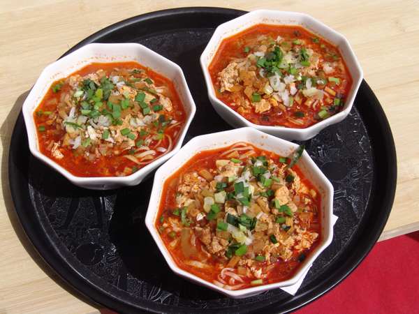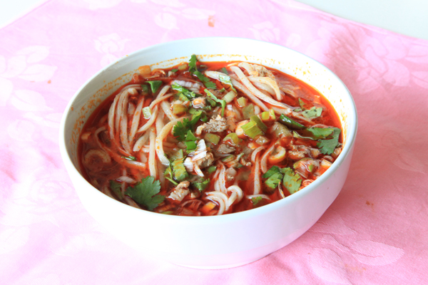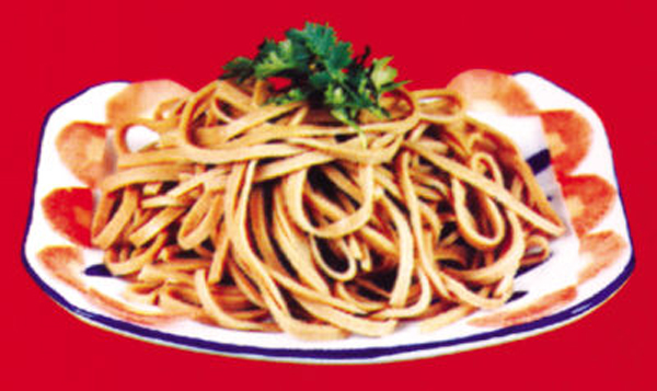 庆阳臊子面又称“哨子面",据传源于明洪武年以后的结婚礼俗。庆阳臊子面制作独特,吃法有趣,堪称一绝。庆阳臊子面庆阳臊子面做工精细,制作分揉面、排面、做汤、煮面几个工序,做成的臊子面条长如线,细如丝,长而柔韧,细而不断,易于消化,老幼皆宜。因汤料不同可分为臊子面和酸汤面。臊子面喷香美味,酸汤面清爽适口,别具风味。