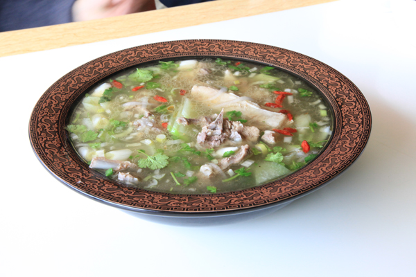 庆阳清汤羊肉讲究肉肥汤鲜,以新鲜的羊肉为底料,羊是庆阳本土的陇东黑山羊、奶羊,汤用鸡髓和羊的骨头熬成。做法是先将洗净的羊肉放入清水锅中用温水煮,待水开羊肉起泡沫后,用漏勺将泡沫除掉,再放入生姜和萝卜片以除膻味;羊肉煮熟后再放入盐,熬十几分钟;捞出羊肉去骨,切成薄片,把肝子、血片,羊肚子切成细丝,单独置放;再投入香菜、姜粉、辣子、葱花、大蒜等调料。食用时将烙馍或锅盔掰碎泡入热气腾腾的羊肉碗内,辣子随着油花飘转,香气四溢。
