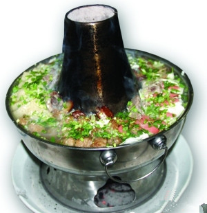 暖锅中,原材料的选择十分重要,用当季的蔬菜,新鲜、不久放。熬制的汤料要用牛骨、羊骨、鸡等一些上好的材料。用铜锅装置,加上精心的摆放,在天水更常见一些。在铜锅中摆放上丰富的食材,倒入提前配置好的汤料。铜锅的中间烟囱里放入的炭火将暖锅中的美食烧至滚烫,掀开锅盖,香气四溢。无需高端的烹饪方式,只需要采用最朴素的食材。口感清淡、咸鲜。