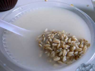 兰州人的夏天,最流行的小食就是甜醅子了。甜醅子又名酒醅子,用筱麦蒸熟后加酒曲酿制而成。甜胚子是用青藏高原耐寒早熟的粮食之一青稞加工而成的一种风味小吃。群众中有句顺口溜:“甜醅甜,老人娃娃口水咽,一碗两碗能开胃,三碗四碗顶顿饭"。