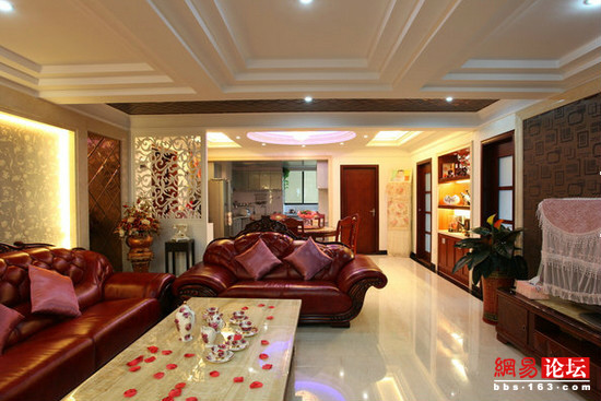 在整体明快、简约、单纯的房屋空间里,传承着西方文化底蕴的壁灯静静泛着影影绰绰的灯光,朦胧、浪漫之感油然而生。而欧式客厅吊顶的装修形式,就配合了整个客厅的整体风格。
