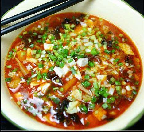 传说之一 楚汉相争的时候,陕西汉中有个叫韩二的人。他刚结婚不久,夫妻二人开了个小面馆,专供轿夫小贩们打个尖消个夜。那时,酸醋还没有出现。韩二卖面条时,只是在臊子上调一些油盐,味道并不好,因此生意很