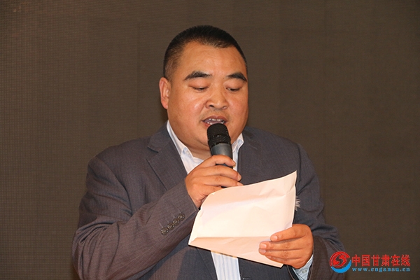 图为:甘肃省名厨委常务会长张建新在平凉分会成立仪式上致辞