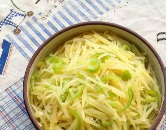 1、将土豆切成丝,放入盆中加入水泡泡;