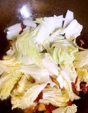 再加点蚝油一起翻炒,翻炒片刻,看到大白菜炒熟后可以出锅了!好简单就这样可以完美收工啦!