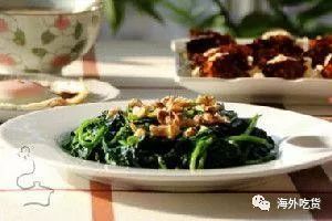 材料:菠菜250克,盐少许,橄榄油两匙,生核桃仁适量。