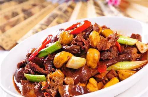 3、下肉块,加黄豆酱,生抽盐,料酒翻炒均匀。视情况加上热水,有的锅具可以不加的