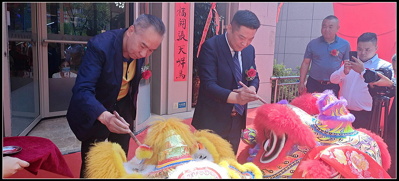 (天盛酒店总经理朱天强与黄河集团董事长给狮子点睛唤醒狮子)